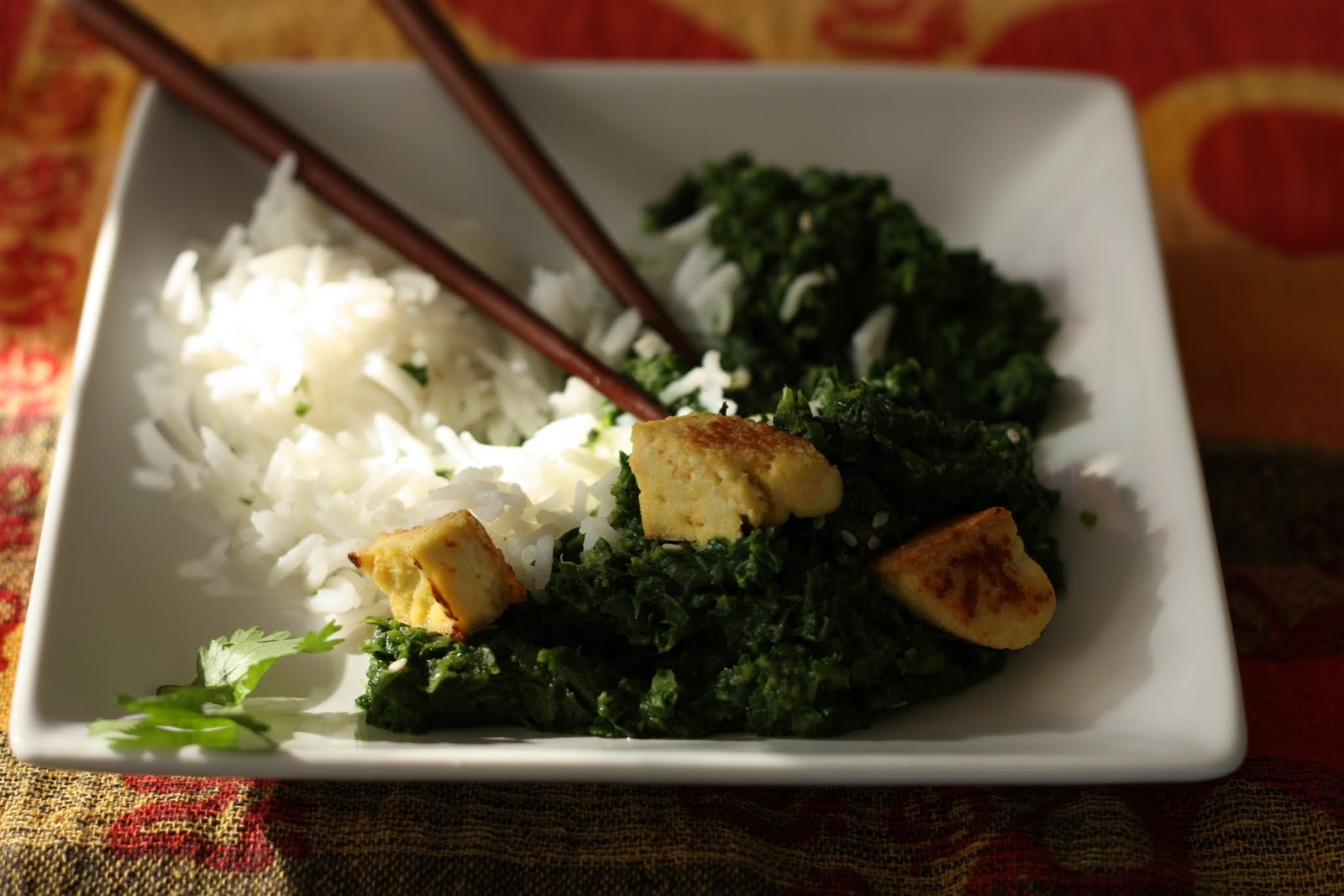 - Faire revenir tous les ingrédients dans de l’huile de sésame. Commencer par faire « dégeler » les épinards puis une fois ramollis, ajouter les épices : ail, gingembre, cumin, moutarde (attention, ça pique le nez rien que de l’intégrer aux épinards chauds ^^), la coriandre ciselée et le sel. Mélanger puis laisser mijoter tout ça quelques minutes. Ajouter un peu d’eau si nécessaire.