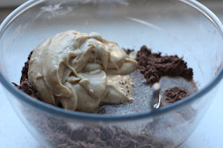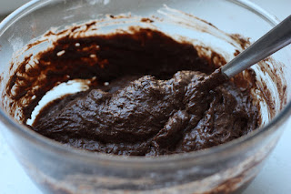 J’ai donc décidé de faire ma propre mixture. Un mélange classique de 3 « farines » sans gluten, des « œufs » de lin que l’on ne présente plus pour le moelleux (boosté avec l’association bicarbonate & vinaigre) et des dattes mixées avec de l’eau pour le côté sucré. Ca ne pouvait être qu’une bonne équation :)