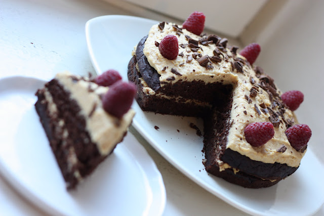 Et si vous ne souhaitez que réaliser le cake sans la crème de beurre de cacahuète, ça fonctionne très bien aussi :) Dans ce cas, confectionnez éventuellement une rapide sauce cacaotée tout comme ici pour le rendre un peu plus festif !