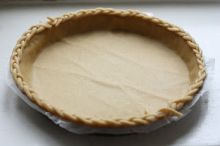 - Etaler la pâte, la piquer et faire précuire 10 minutes à 210°C. Vous pouvez également faire quelques tresses et feuilles (ou autre :) avec les chutes de pâtes (cf. photos ci-dessous) et les mettre à cuire.